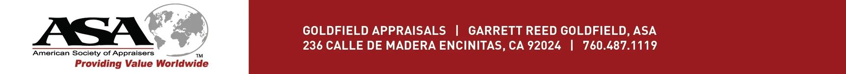 Garrett Goldfield is an Accredited Senior Appraiser in Fine Art and Residential Contents from the American Society of Appraisers. Garrett received his B.A. from the University of California, Santa Barbara and his Certificate in Appraisal Studies of Fine and Decorative Arts from the University of California, Irvine.